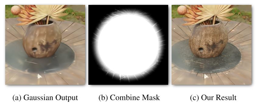 - A smooth color image and approximate depth map are rendered from a limited set of 3D Gaussians with a temporally stable sorting active.