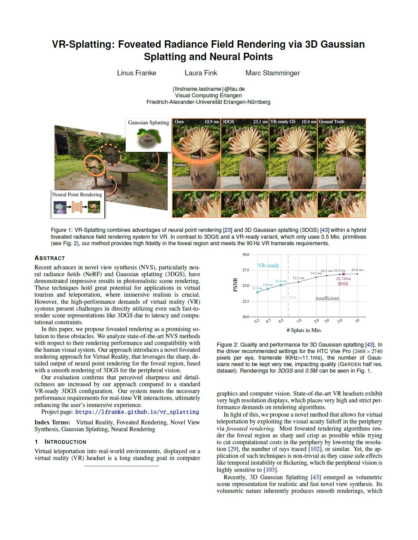VR-Splatting: Foveated Radiance Field Rendering via 3D Gaussian Splatting and Neural Points i3D 2025 (PACMCGIT)